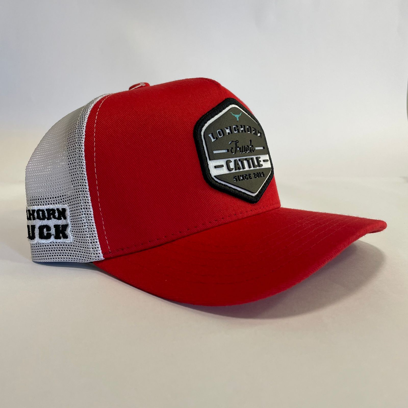 Detalhes: Boné modelo TRUCKER (copa alta), aba curva, Patch Bordado com plastizol em alto relevo na parte frontal. Bordado nas laterais e atrás. Contém 6 costuras na aba e feixe de plástico ajustável na parte traseira.