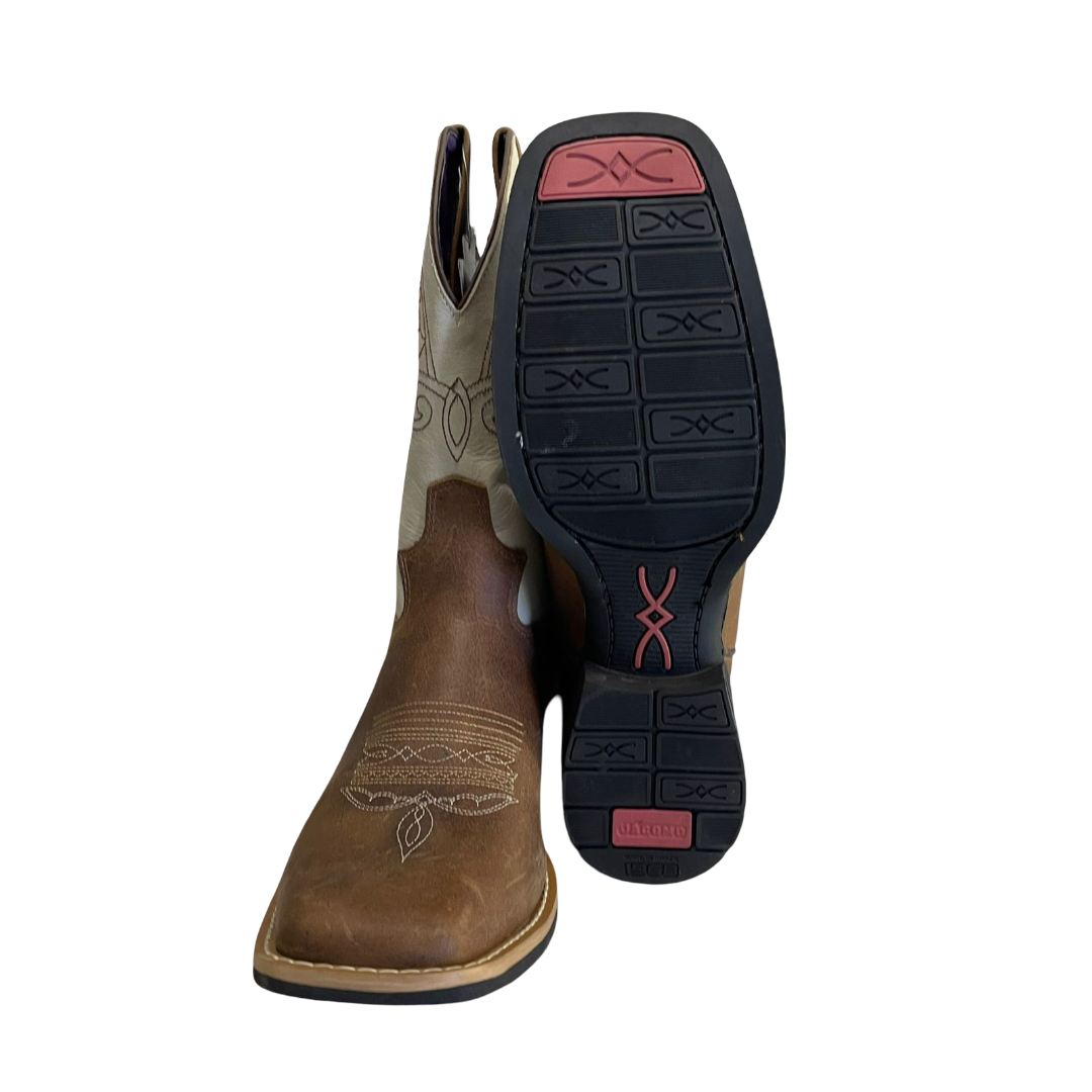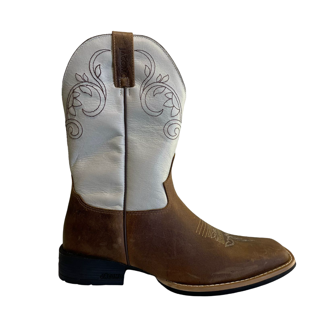O bico quadrado é um detalhe que remete à tradição do oeste, adicionando um toque artístico e único à bota;