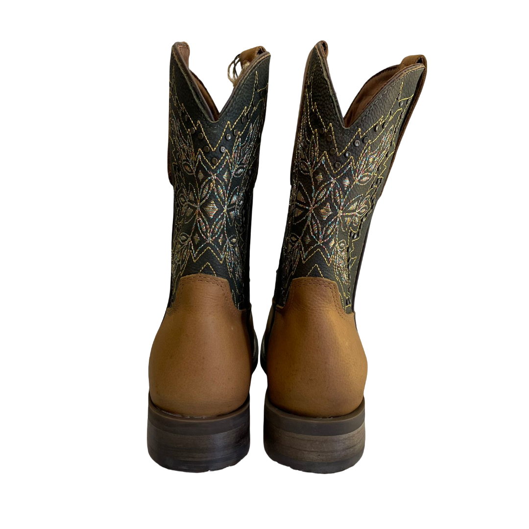O cano alto, com bordado detalhado, acrescenta um toque de elegância e autenticidade à bota, permitindo que você exiba seu amor pelo estilo country de forma sofisticada;