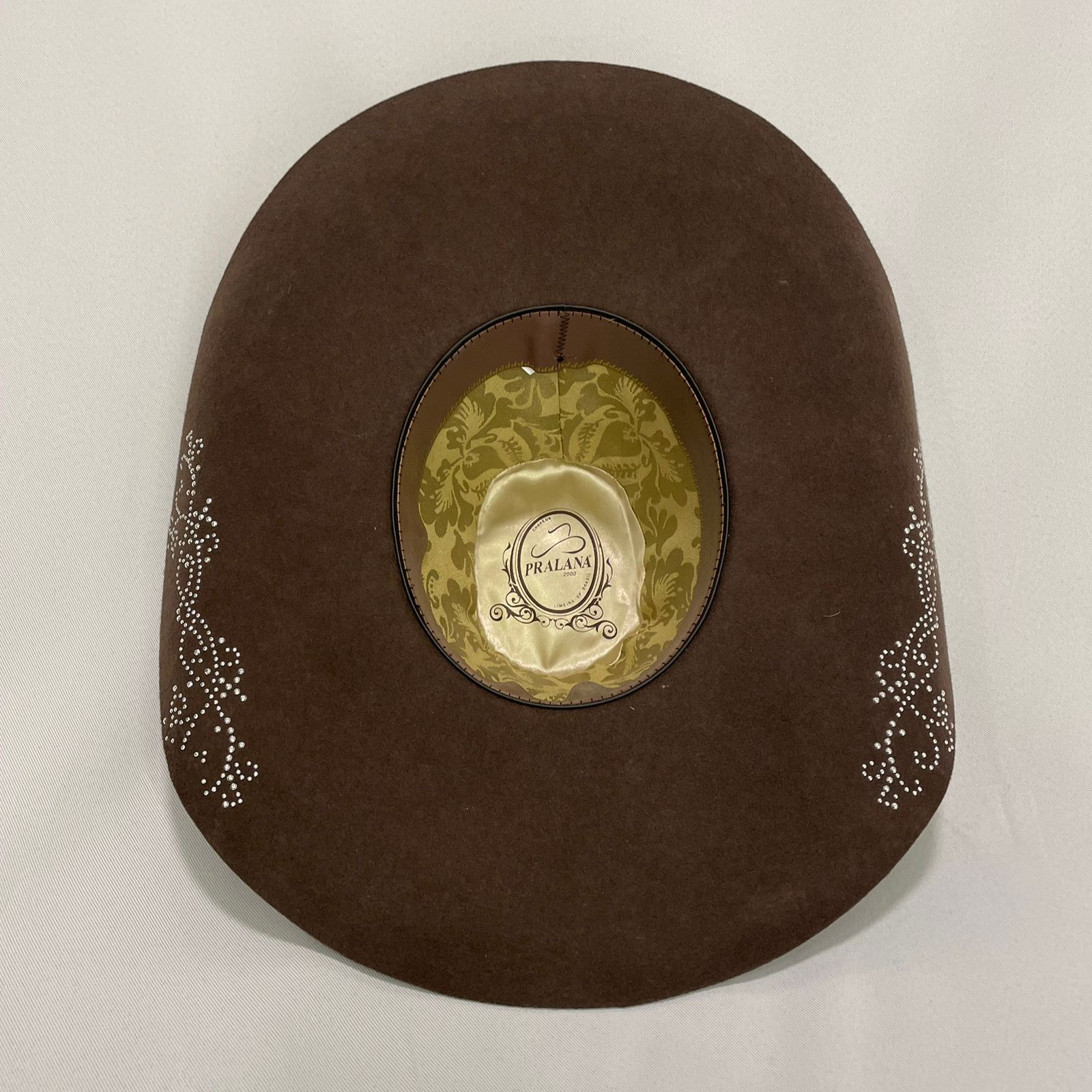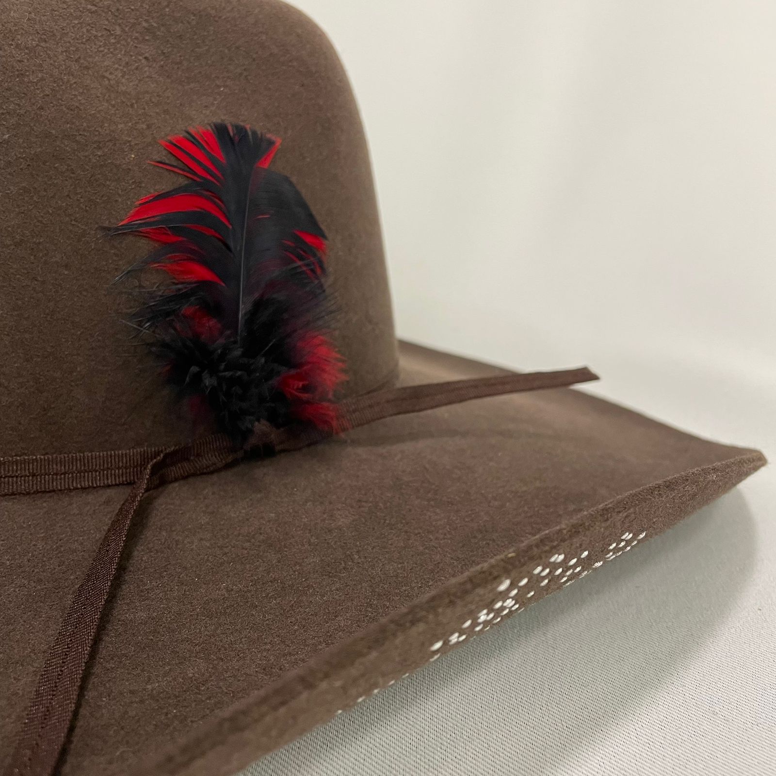 | Chapéu Modelo Champion Biplay fabricado em feltro de Lã de alta qualidade, na cor Tabaco copa com aproximadamente 12cm, aba com 12 cm, banda em fitilho em tecido na mesma cor do chapéu com Pena lateral, brilho na parte da aba, forrado internamente personalizado Pralana. – Este Chapéu é vendido por NUMERAÇÃO: