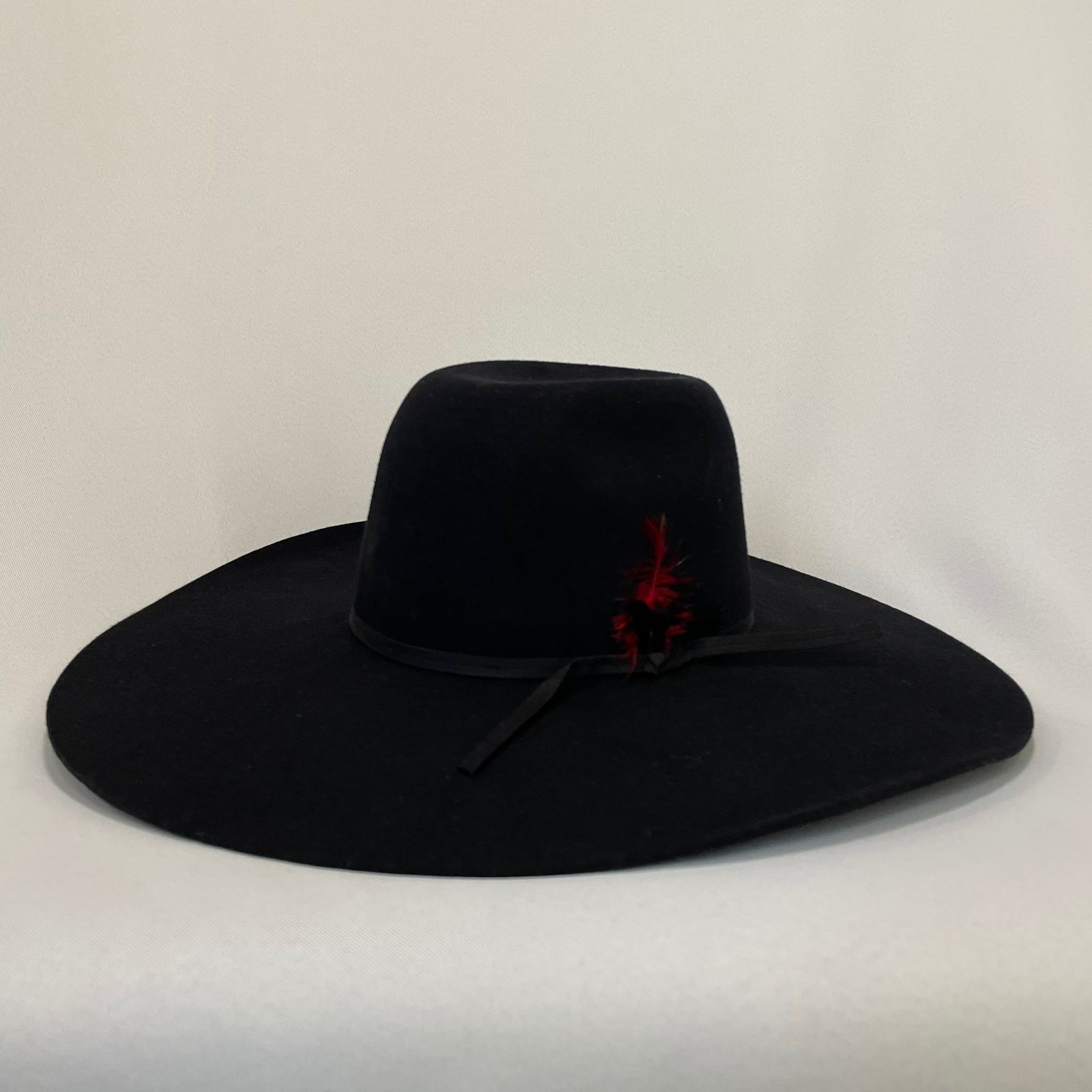 Chapéu Modelo Champion Biplay fabricado em feltro de Lã de alta qualidade, na cor Preto Copa com aproximadamente 12cm, aba com 12 cm, banda em fitilho em tecido na mesma cor do chapéu com Pena lateral, forrado internamente personalizado Pralana. – Este Chapéu é vendido por NUMERAÇÃO: