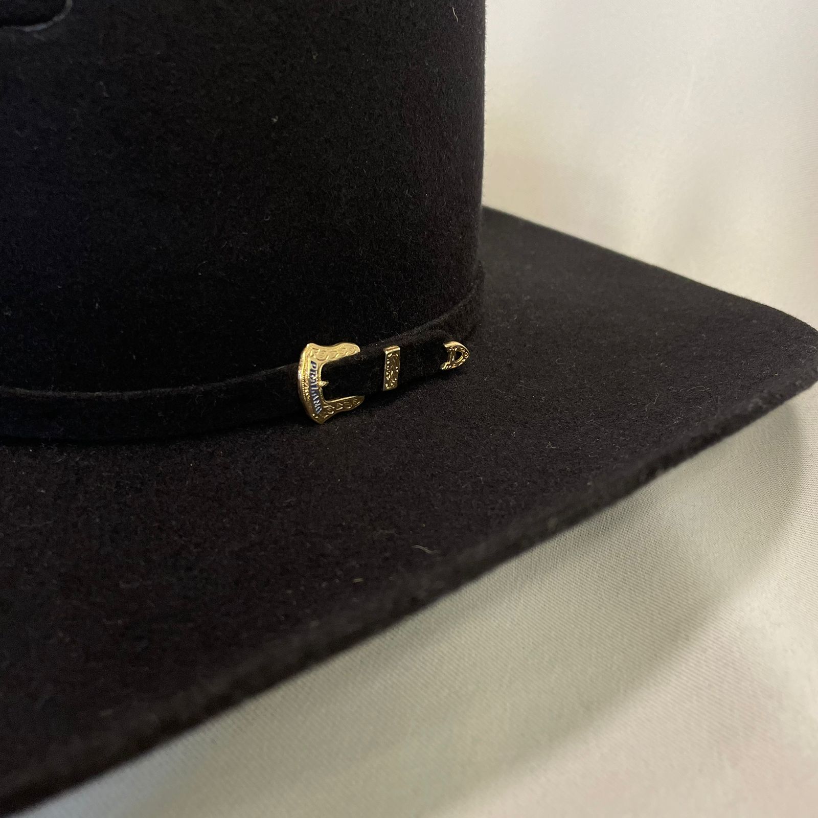 Construção: Chapéu 30X com banda em feltro com detalhe em dourado e carneira em recouro.
